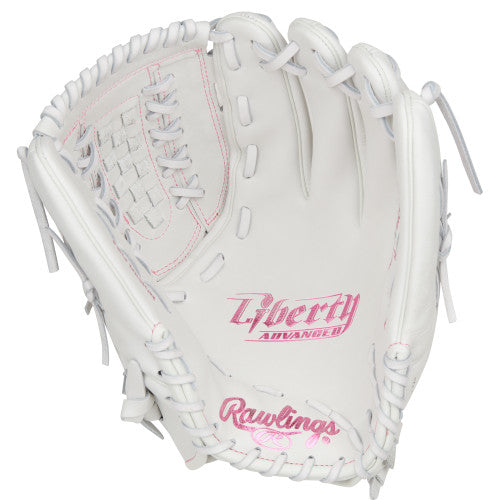 The Rawlings Liberty Advanced 12.5-inch fastpitch glove features quality, full-grain leather for enhanced durability. This results in the glove being made for a quick, easy break-in. The X-laced basket web pattern on this Liberty Advanced glove allows for a deep pocket, which allows for quick transitions and a tight squeeze. The pattern and web of the glove make for a good combination to be able to eat up any ground balls headed your way. To increase comfort, the Poron XRD padding in the glove helps reduce palm stings when dealing with hard-hit balls. Additionally, the Liberty Advanced series features pull-strap closures to create a custom fit along your wrist, which provides you with optimal comfort throughout the entire game. Transform your game with the Rawlings Liberty Advanced 12.5-inch fastpitch glove today!