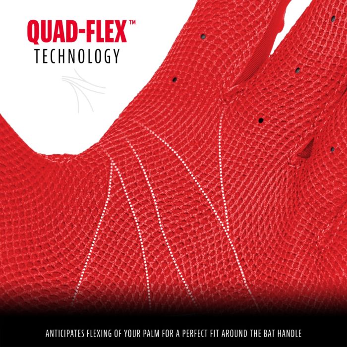 - QUAD-FLEX TECHNOLOGY®: Anticipates flexing of your palm for a perfect fit around the bat handle