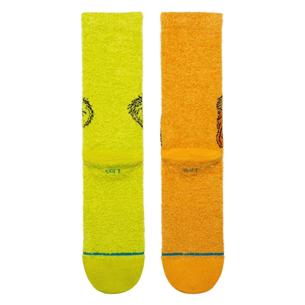 The Grinch and Max Socks boast a 71% polyester, 14% Nylon, 13% combed cotton and 2% elastane blend fabric that has a super soft, comfortable feel. With those standard Stance features like a seamless toe cap, targeted cushioning, engineered arch support and stay-put fit, combining to make an insanely comfy pair of socks.
