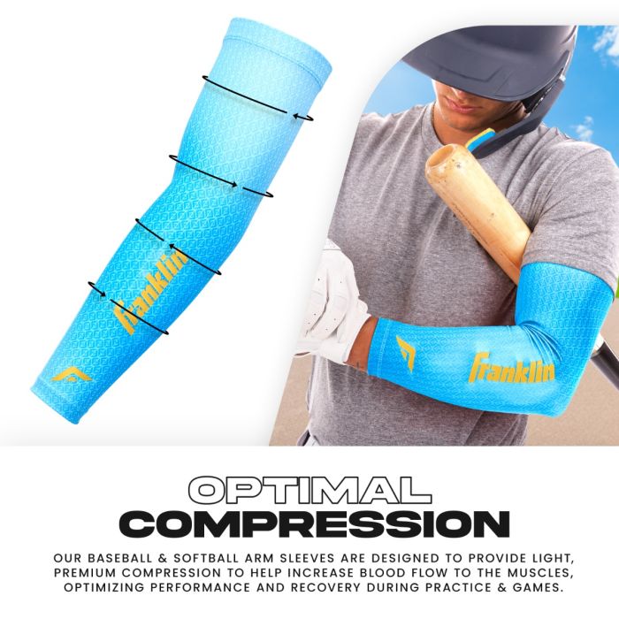 - OPTIMAL COMPRESSION: Our baseball and softball arm sleeves are designed to provide light, premium compression to players' arms to help increase blood flow to the muscles, optimizing performance and recovery during practice and games.